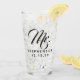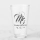 Personalized Custom Mrs Mr Couple Wedding Drinking Glass, a beautiful keepsake bridal shower gift or his and hers customizable wedding gift for the new home.