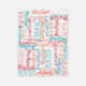 Cheerful colors orange, salmon red and turquoise blue. Put the kid's name all over this colorful rainbow of creative typography. Vibrant assortment of colors and fonts with first name or chosen word repeated all over. Celebrate any occasion with a personalized custom name collage gift blanket, perfect for a children's birthday, Custom Christmas gift idea or to celebrate a new baby!
