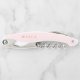 Modern elegant and understated monogram initial and custom name on a folding wine bottle opener with corkscrew and cutter with a classic minimal, professional-looking sans-serif font for a simple, modern and timeless look in pink and coral.