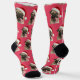 Bring the holiday cheer to life with this adorable Pug Christmas pattern! This pup wears a classic red Santa hat, creating a fun and festive repeating design over a cheerful background. These socks are perfect for dog lovers or anyone who enjoys playful holiday art.