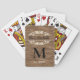 Fun playing cards set with contemporary brown faux wood grain style look with antique floral filigree banner motif. With room to personalize or customize with family name, monogram or initial.