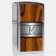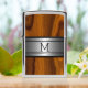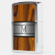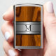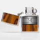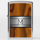 Contemporary classy zippo lighter featuring a stylish wood grain pattern design. With silver metal looking banner to customize or personalize with name, monogram or initials of your choice. Ornate, funky, modern and whimsical hipster design for the elegant vintage retro style loving husband or boyfriend, wedding groomsman, artistic fashionable trendsetter, or graphic digital industrial motif lover.
