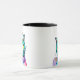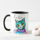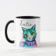 Add a name to this Teal, purple, pink and blue kitty cat with yellow eyes coffee mug.