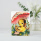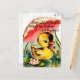 Beautiful Vintage art of an adorable baby duck with an umbrella on a lily pond .Cute Postcard.