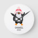 Personalized Cute Christmas Penguin in Red Hat Round Clock
