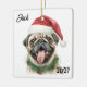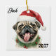 Personalized Cute Christmas Santa Pug Ceramic Ornament