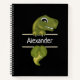 Great for school, doodling, and journaling, this personalized notebook features a cute green dinosaur on a simple black background. Makes a great stocking stuffer or school notebook for boys who love dinosaurs.