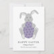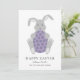 Celebrate the season with this personalized Easter greeting card, featuring an adorable Easter bunny cuddling a purple spotted egg. This sweet and playful design blends modern minimalist rabbit artwork with a soft spring aesthetic, making it perfect for sending warm Easter holiday wishes to family and friends.