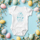 This baby bodysuit features blue text image "First Time Hunter" with Easter eggs and personalized with your child's name. Perfect for the your baby's first Easter.