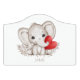 Cute elephant with a red heart, cute, modern and simple door sign. Beautiful detail on a baby boy's nursery. Easily personalize the name. Matching items are available in my store - Kate Eden Art.