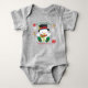 This adorable baby bodysuit features Snowman with top hat, scarf and socks surrounded by white, green and red snowflakes. Custom text "My First Christmas" and your child's name and year are above and below the snowman. Makes a great gift! Easy to personalize with custom options. Use the 'Customize It' button to customize the product, or add text.