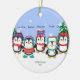 Personalized Cute Five Penguin Snow Scene Ceramic Ornament