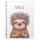 Personalized Cute Floral Sloth with Flower Crown Notebook