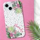 Relax and unwind with this cute floral phone case! A tropical design that embraces the tranquil beauty of nature mixed with a playful edge that is sure to help you relax and have fun every day. A blend of calming green tropical leaves, including banana leaves, palms, monstera leaves, and pink princessa plants, alongside soothing purple-pink orchid flowers and protea bloom, intertwined with various other foliage. Adding an element of fun, a gray 'messy dot' or 'dalmatian dot' background infuses the design with a playful touch. Enhanced by a modern handwritten font, this enchanting print radiates charm and sophistication. This versatile design brings a sense of tropical paradise to any setting or special occasion. Check out all of the coordinating pieces too! Cute Trendy Watercolor Leaves Floral Tropical iPhone 15 Case.