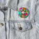 Personalized Cute Gray Cat with Colorful Flowers Button