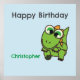 Personalized cute green dinosaurs blue birthday poster