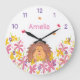 Personalized Cute Hedgehog Nursery Large Clock