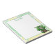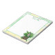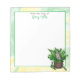 Personalized notepad with an adorable hand drawn gray kitten sitting in an antique bucket of catnip. Green and yellow marble background.