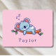Add a child's name to this adorable baby blanket featuring a cute sleeping baby koala cartoon, reclining on a leafy tree branch. Background is a soft pastel pink color. Whimsical and stylish, this personalized baby blanket makes a sweet baby shower gift and great addition to a nursery or child's room. Pairs well with both traditional and more contemporary styles of décor. Choice of colors available.