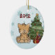 Personalized Cute Orange Cat and Christmas Tree Ceramic Ornament
