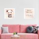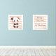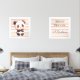 Designed with a sophisticated palette of peach stripes and deep espresso accents, these square prints offer a modern, boutique feel that complements any contemporary nursery or playroom. The high-contrast text and soft character art create a perfect visual balance for a cozy sleep environment.