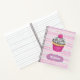 This notebook is decorated with a chic sparkly cupcake with a cherry on top. This girly notebook has a pink and purple striped background. Personalize it with your name. Great for back to school. Designed for you by Blackberry Boulevard.