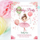 Personalized Cute Pink Floral Ballerina Birthday Invitation