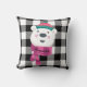 Personalized Cute Polar Bear Black White Gingham Throw Pillow