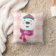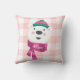 Personalized Cute Polar Bear Pink Gingham Holiday Throw Pillow