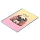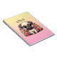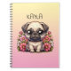 Personalized girl's notebook. Cute chibi cartoon cozy little pug puppy dog sitting in pink flowers with a name that you can add in the personalize area.