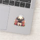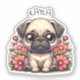 Cute chibi cartoon cozy little pug puppy dog sitting in pink flowers with a name that you can add in the personalize area.