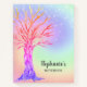 This pretty notebook is decorated with a tree and background in rainbow colors and sparkling stars.
