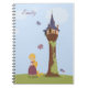 This girls personalized notebook has a cute rapunzel theme. There is a tower with Rapunzel standing next to it. There are flowers blooming and some butterflies flying around. You can easily customize this your name. Graphics by JD Digi Designs at MyGrafico