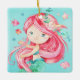 Personalized Cute Red Haired Mermaid Christmas Ceramic Ornament
