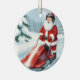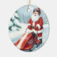 Personalized Cute Santa Doing Snowmobiling Ceramic Ornament