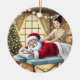 Personalized Cute Santa Getting a Massage Ceramic Ornament