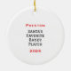 Personalized Cute Santa Playing Bandy Ceramic Ornament
