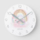 Cute unicorn with a golden, faux glitter rainbow modern and simple round clock. Beautiful detail in to a baby girl's nursery or girls room. Easily personalize the name. Matching items are available in my store - Kate Eden Art.