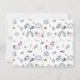 Cute girl's personalized flat note card. It features a fun pattern design with unicorns, rainbows, magic wands, stars, diamonds, bows, clouds and wings.