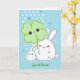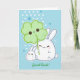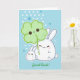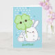 This design features two cute fat bunny with kawaii four-leaf lucky clover with polka dots on light blue background. It's great to use it for Saint Patrick's Day or any ocassion you want to wish someone luck. You can easily change the text to anything you want. Designed by ChibiBunny.