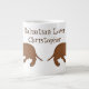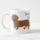 Mug with a dachshund dog design that you can customize with any text of your choice. Should you require any help with customizing then please contact us through the link on this page. Mug design by justbyjulie