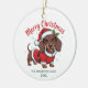 Personalized Dachshund in Santa Hat Christmas Ceramic Ornament