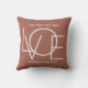 This We Love You Dad Photo Pillow is decorated with the word LOVE in white typography on a brown background.