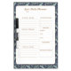 This modern personalized daily planner schedule on a dry erase board with checklists is decorated with a teal blue green leafy foliage on navy blue border. Elegant script typography at the top can be personalized with a name. Under that is a place to enter the day or date. All subtitles for each section can be customized with your own text if you wish. There are To Do List sections for morning, afternoon and evening. In addition, there is one section is for meal planning, one section for an exercise or a workout plan and one section for adding a daily affirmation or gratitude. The check boxes can be marked as each task is accomplished. Erase your entries at the end of the day after seeing all you've accomplished, and start with a fresh new plan the next day!