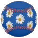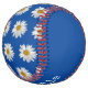 Personalized White daisy pattern softball on a blue background. With white lettering, you can personalize with your own name. This item adds a cute touch to your outdoor activities.