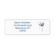 Colorful label with whimsical rainbow colored dandelion. Name and address are in blue and a clean, easy to read typography.
