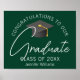 This modern dark green custom graduation party poster features your high school or college graduate for the class of 2026. Customize with your graduating year under the chic handwritten script and grey grad cap for trendy personalized graduation party decor.