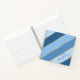 Fun note book for women or girls. With beautiful contemporary pastel, light, medium and dark classic blue colored stripes pattern. With room to customize with name, monogram or initials of your choice. Ornate, funky, modern and whimsical hipster design for the elegant artistic fashionista or artsy fashion diva, hip trendsetter or simple retro striped art style motif lover.
