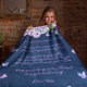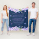 Cute floral daughter blanket with elegant script text that can be edited and personalized with your own names. It features flowers in purple, violet, and pink, butterflies, and a heartfelt and meaningful quote from a mother reading "To my beautiful daughter, no matter how near or far apart, you are always present in my heart. I'm blessed to be your mother and I will always be here to love you and guide you whenever you need me. Wrap yourself up in this blanket when you need a hug. Love, mom".