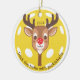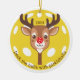 Personalized deck the halls with pickleballs ornament. The reindeer's head and neck are in the shape of a pickleball paddle, while its red nose resembles a red pickleball. Standard yellow pickleball background. Personalize with a year. Keep the curved text as shown or customize with your own wording. Add your team or league name as well as a player's name on the back of the ornament. It makes a perfect gift for pickleball enthusiasts. © Kimbellished, LLC